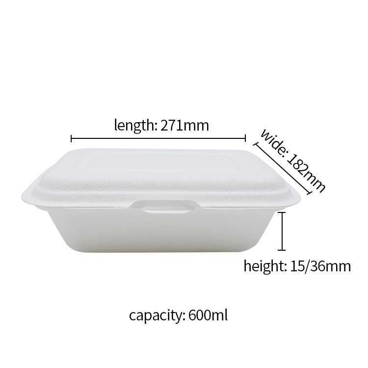 ภาชนะบรรจุอาหารเยื่อชานอ้อยแบบใช้แล้วทิ้งที่ย่อยสลายได้ทางชีวภาพ 100% สำหรับมื้อกลางวัน