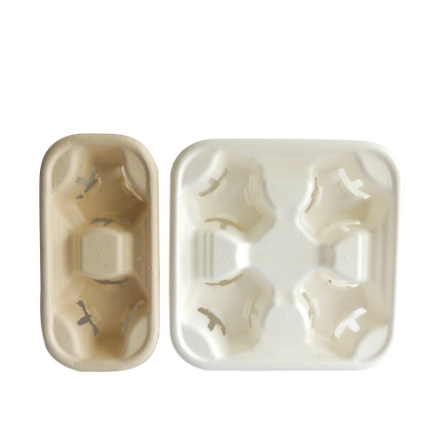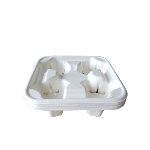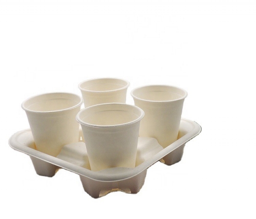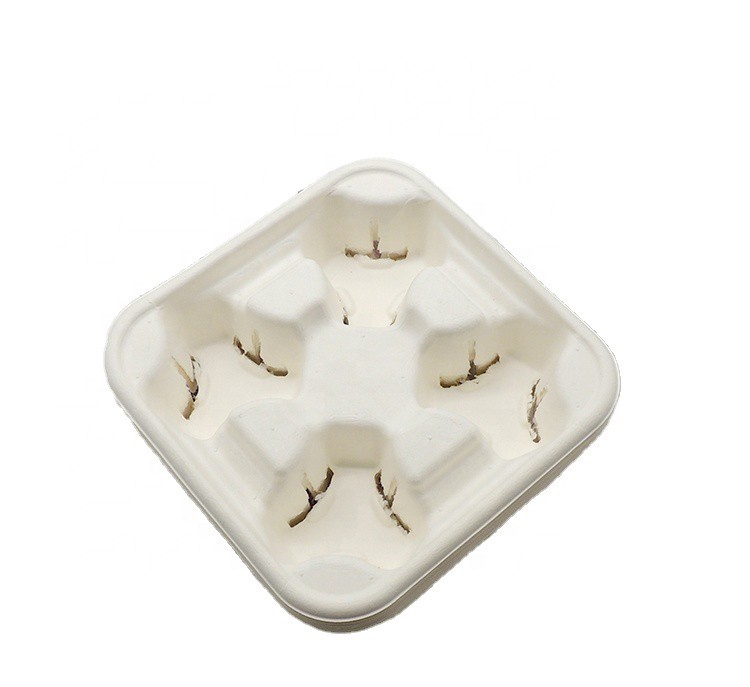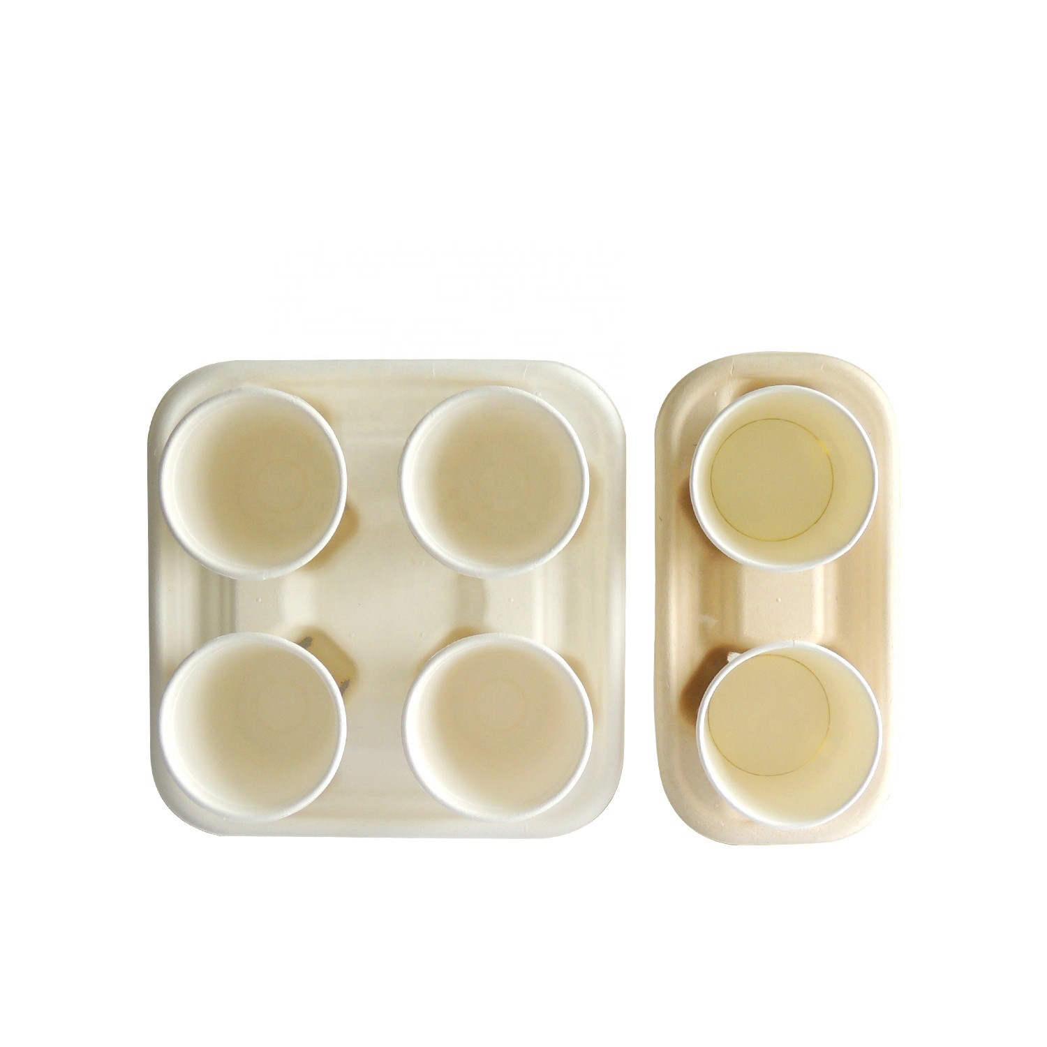 ถาดรองถ้วยกาแฟชานอ้อยแบบใช้แล้วทิ้งที่ย่อยสลายได้ 4 ถ้วย