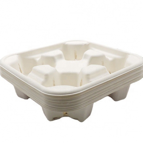ถาดใส่เครื่องดื่มใยอ้อยแบบใช้ซ้ำได้ 4 ถ้วย